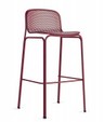 El respaldo del taburete, en la reconocible rejilla metálica, se ha rebajado respecto a las versiones de silla, para volverlo más práctico y de apariencia más ligera. Aunque es un producto orientado al uso en exteriores, gracias a su elegancia innata también se adapta perfectamente a ambientes interiores.